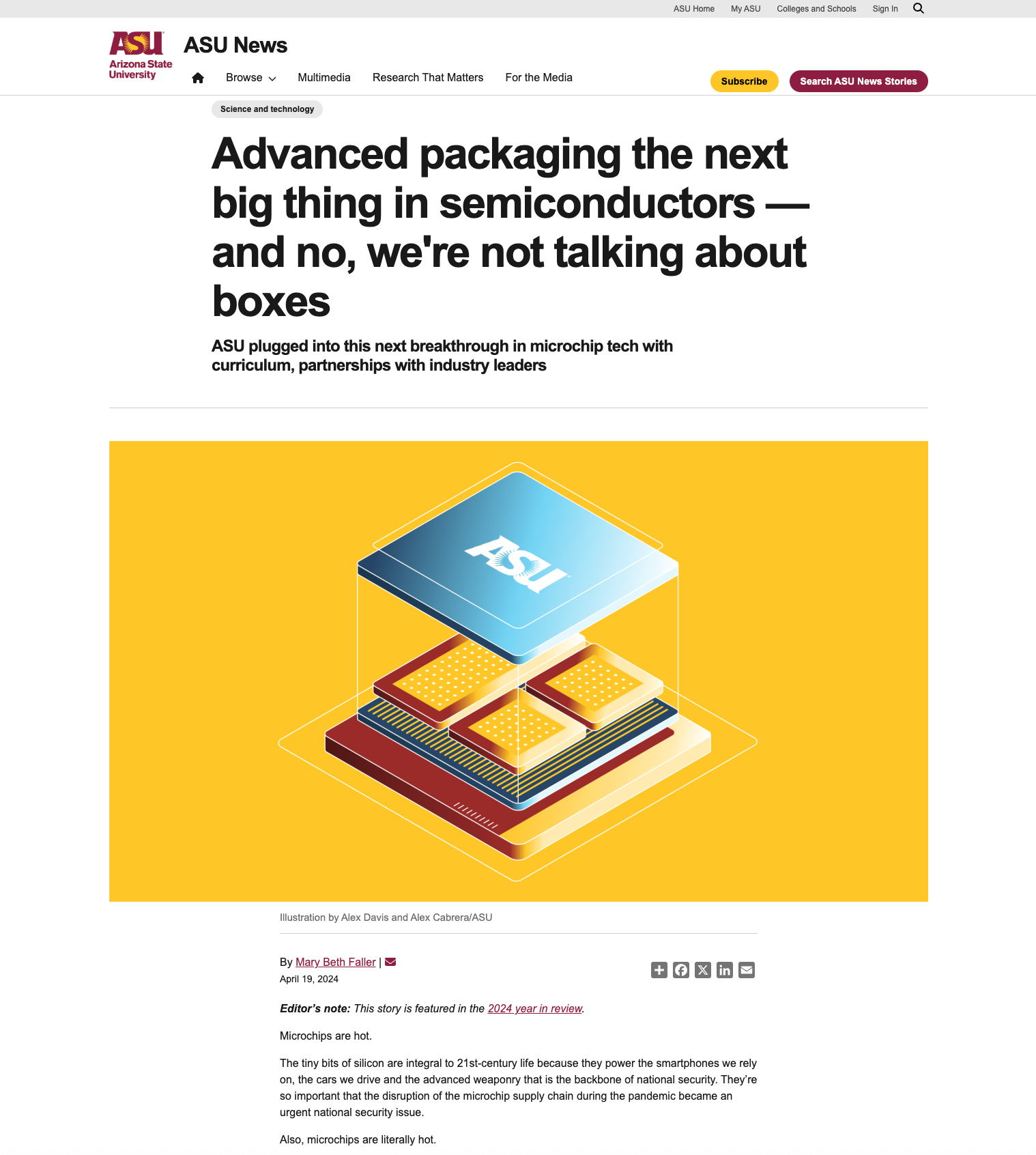 See the final project live in the ASU News article Advanced packaging the next big thing in semiconductors.